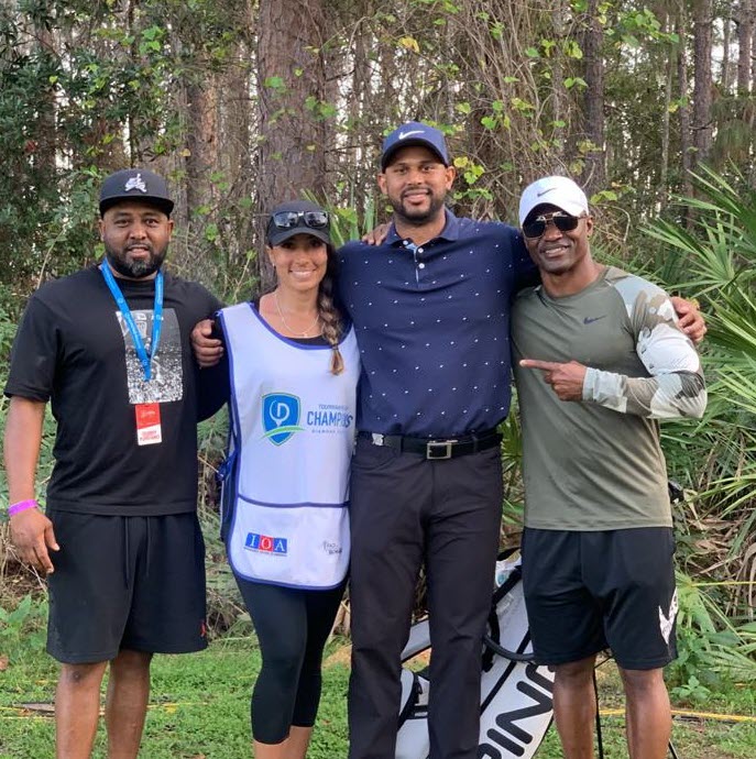 Abdul with Naomi Osaka's family and team during a tournament win